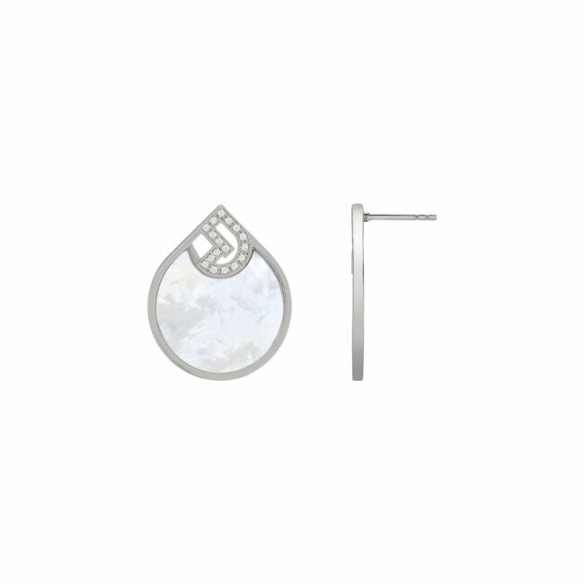 Boucles d'oreilles Jourdan Bijoux Héritage Signature Initiale Joy en argent 5.14g, nacre et oxydes de zirconium