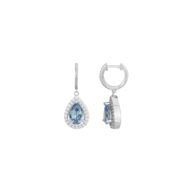 Boucles d'oreilles Griffe Rouge en argent et oxyde de zirconium bleu topaze et blanc