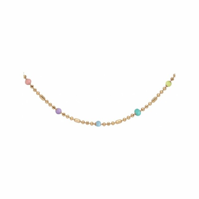 Collier en plaque or boules résine multi couleurs 40+5cm