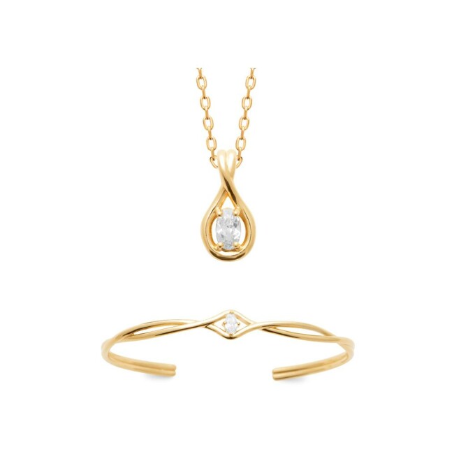 Collier en plaqué or, oxyde de zirconium et pierre synthétique
