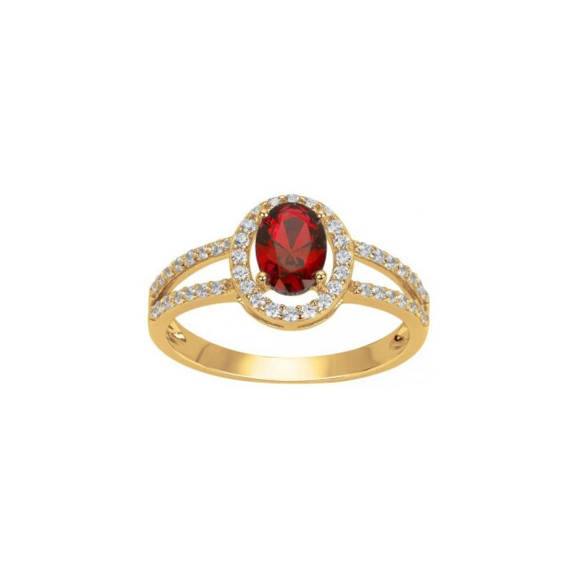 Bague en plaqué or, oxydes de zirconium et spinelle synthétique, taille 58