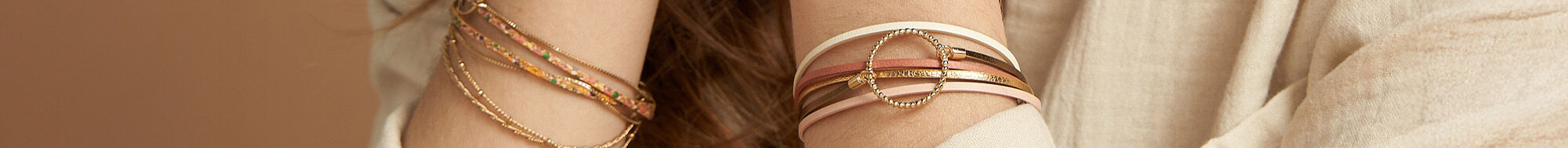 Bracelet Flowersforzoé en cuir et métal doré