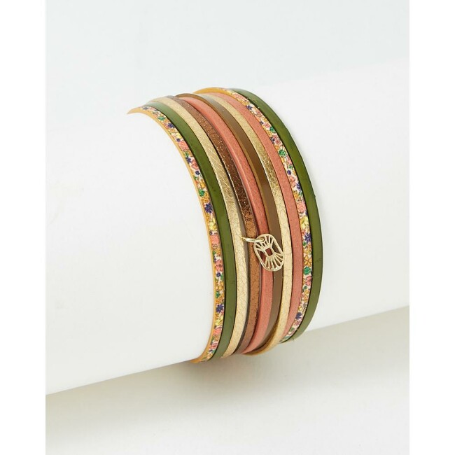 Bracelet FlowersforZoé APPOLINE en acier doré et cuir, T1