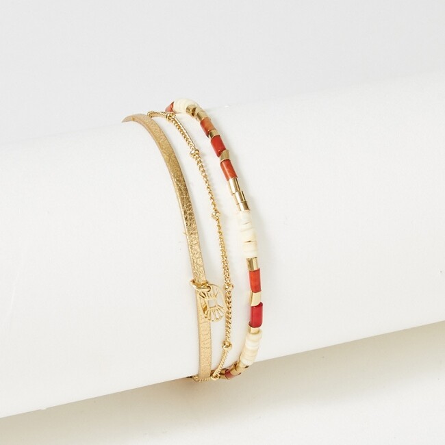 Bracelet Flowersforzoé APPOLINE Orange Blood & Howlite en métal doré et cuir T2