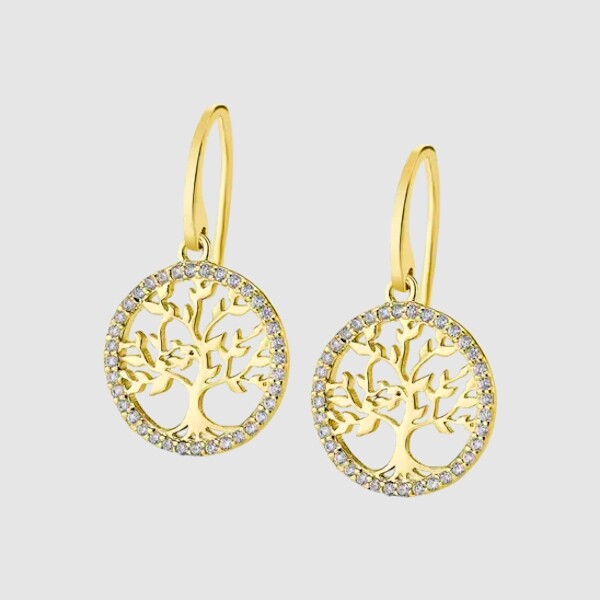 Tree of Life Boucles d'oreilles Lotus Tree Of Life en argent doré et oxydes de zirconium