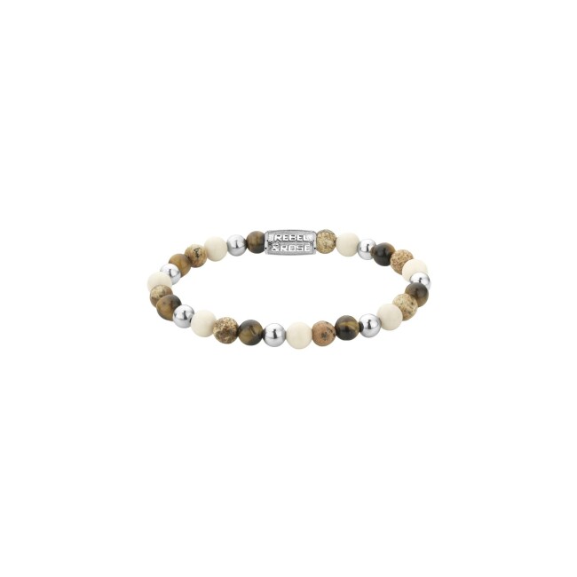 More balls than most Bracelet Rebel & Rose More Balls Than Most en jaspe bréchique, rhyolite, hématite grise, œil de tigre bleu et jaune, taille M