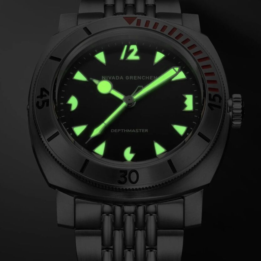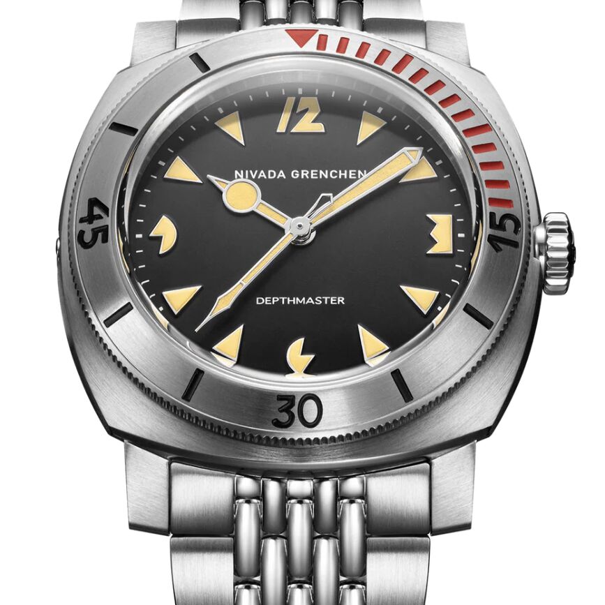 Réédition moderne de l'emblématique montre de plongée Nivada Grenchen des années 1960, réputée pour sa robustesse et son étanchéité exceptionnelle. Dotée d'un boîtier coussin de 39 mm en acier inoxydable et d'un cadran Art déco distinctif orné d'index lumineux audacieux, cette montre rend hommage à ses origines vintage tout en intégrant des innovations contemporaines.