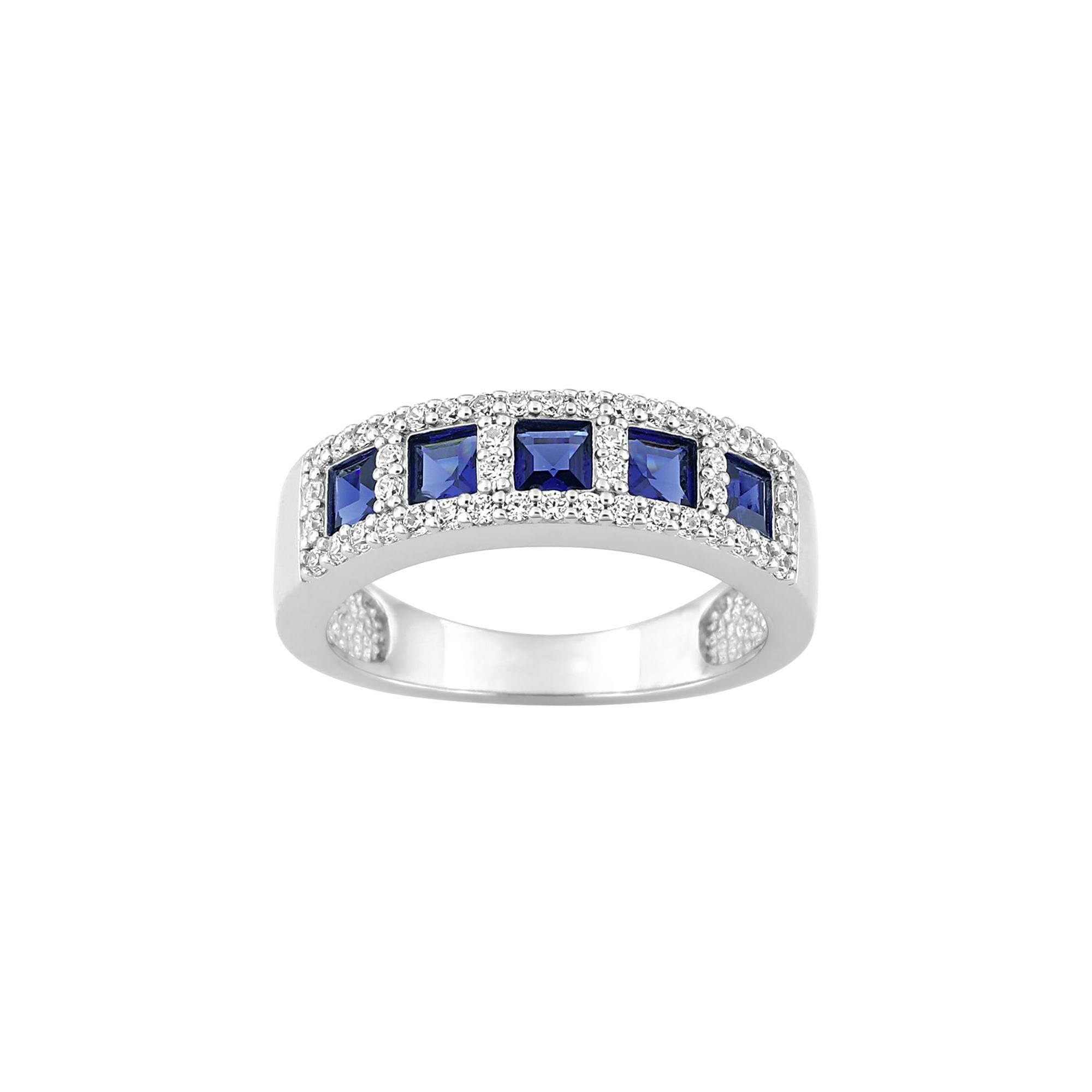 Bague en argent rhodié et oxyde de zirconium bleu et blanc Description détaillée