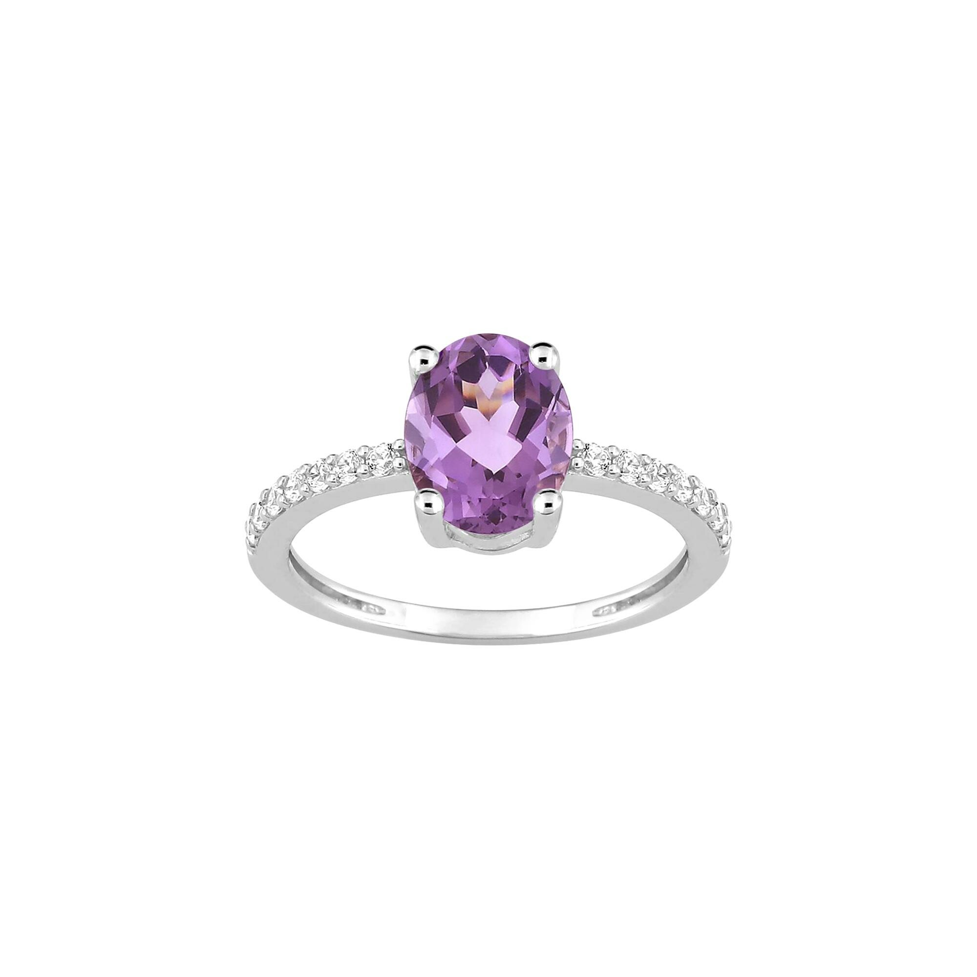 Bague en or blanc, oxyde de zirconium et améthyste Description détaillée