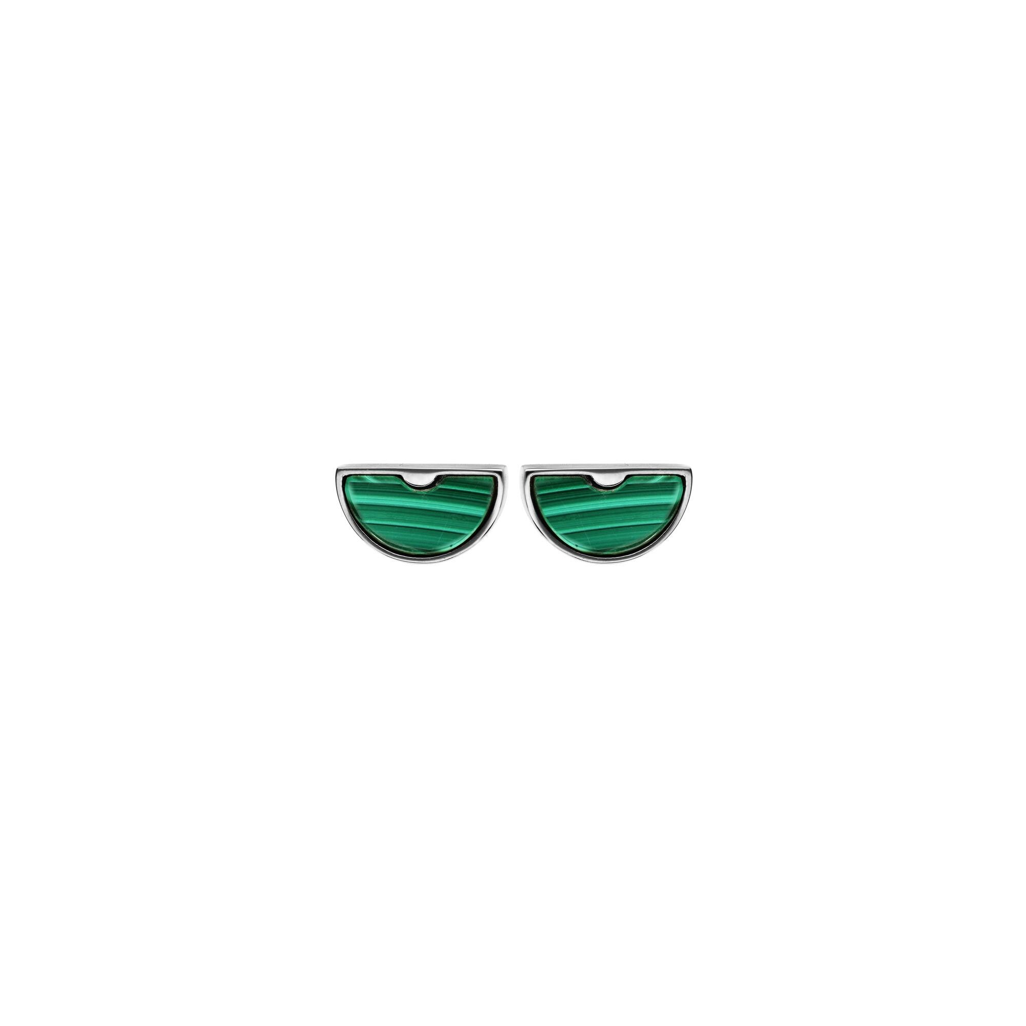 Boucles d'oreilles tige acier demi-lune pierre malachite véritable Description détaillée