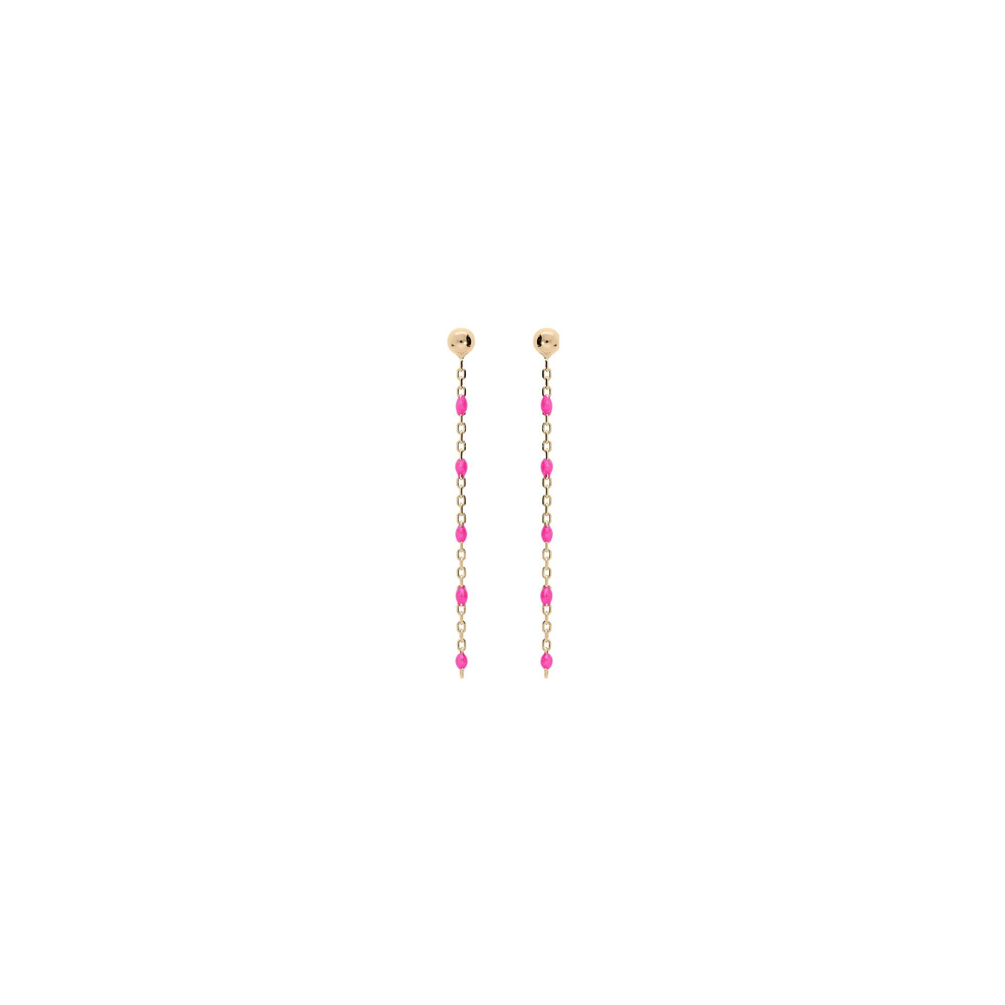 Boucles d'oreilles tige argent et dorure jaune olives résine rose fluo Description détaillée