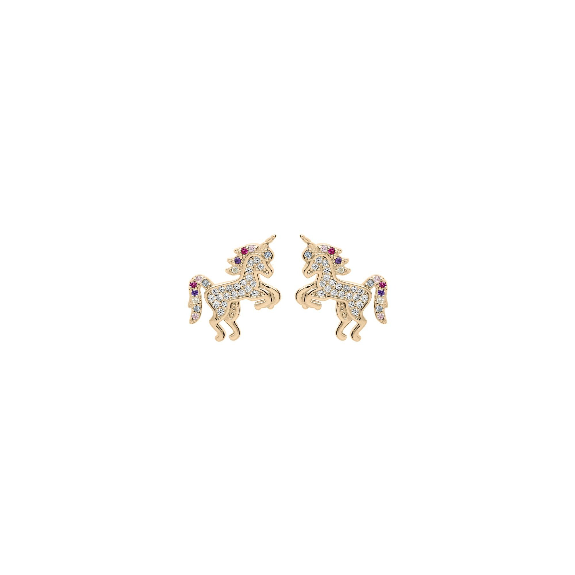 Boucles d'oreilles tige plaqué or licorne oxydes multi couleurs sertis Description détaillée