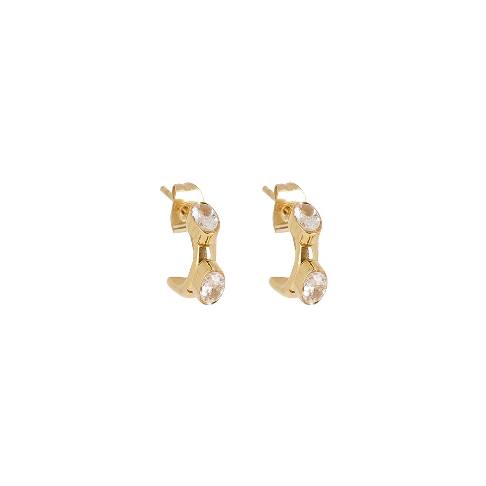 Boucles d'oreilles Zag Boat en acier doré et oxyde de zirconium Description détaillée