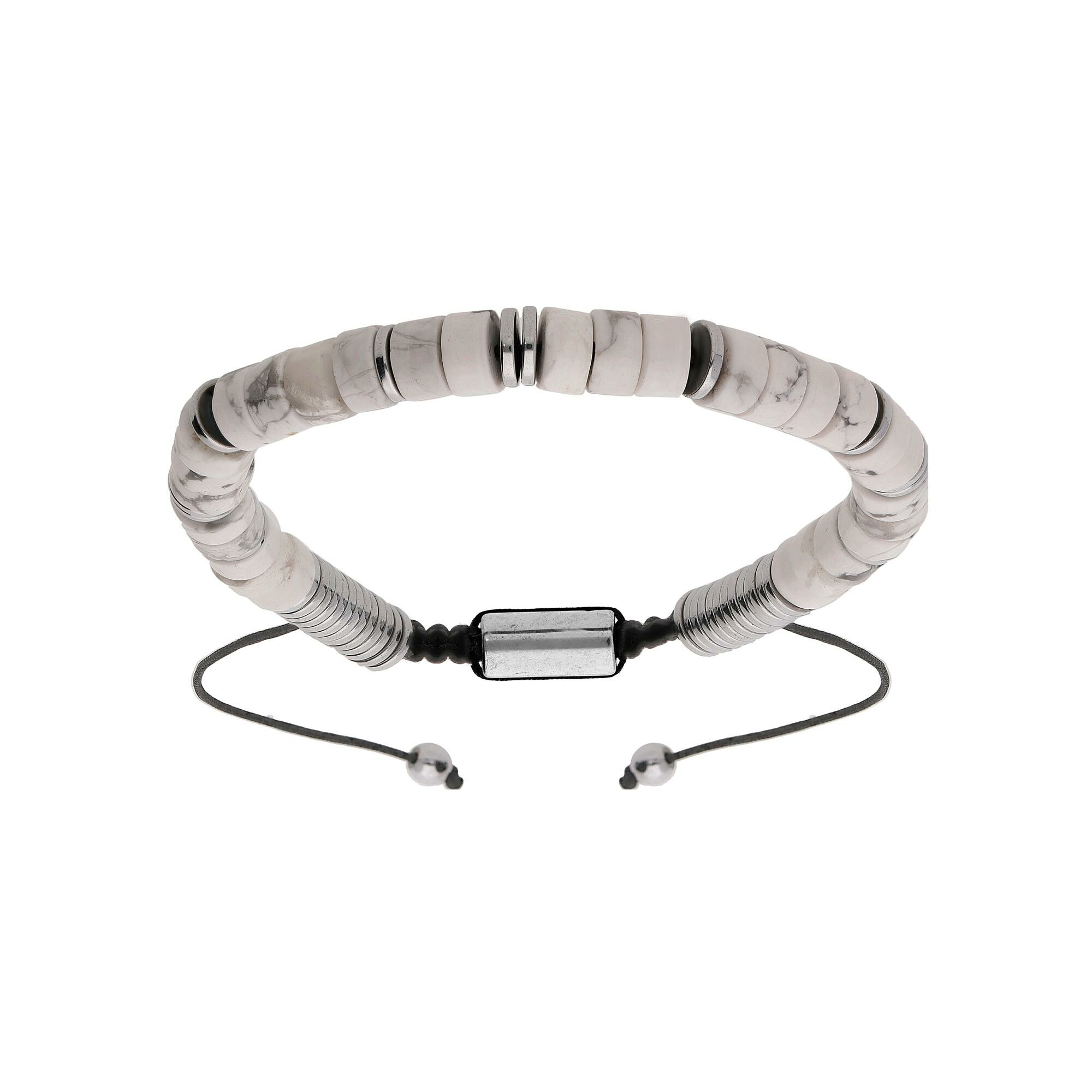 Bracelet acier pierres howlite véritable coulissant cordon noir Description détaillée