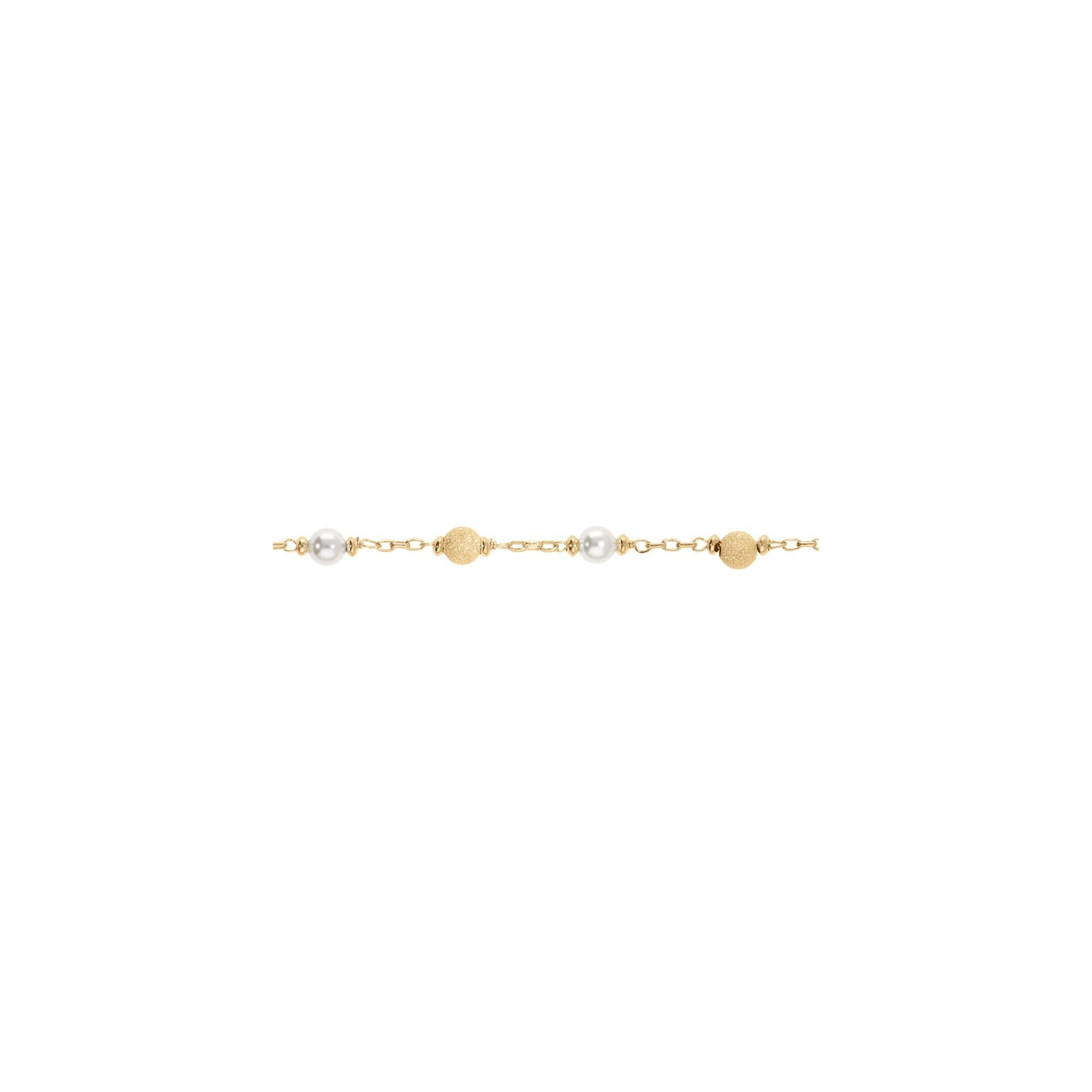Bracelet argent doré boules givrées et perles blanches imitation 16+3cm Description détaillée