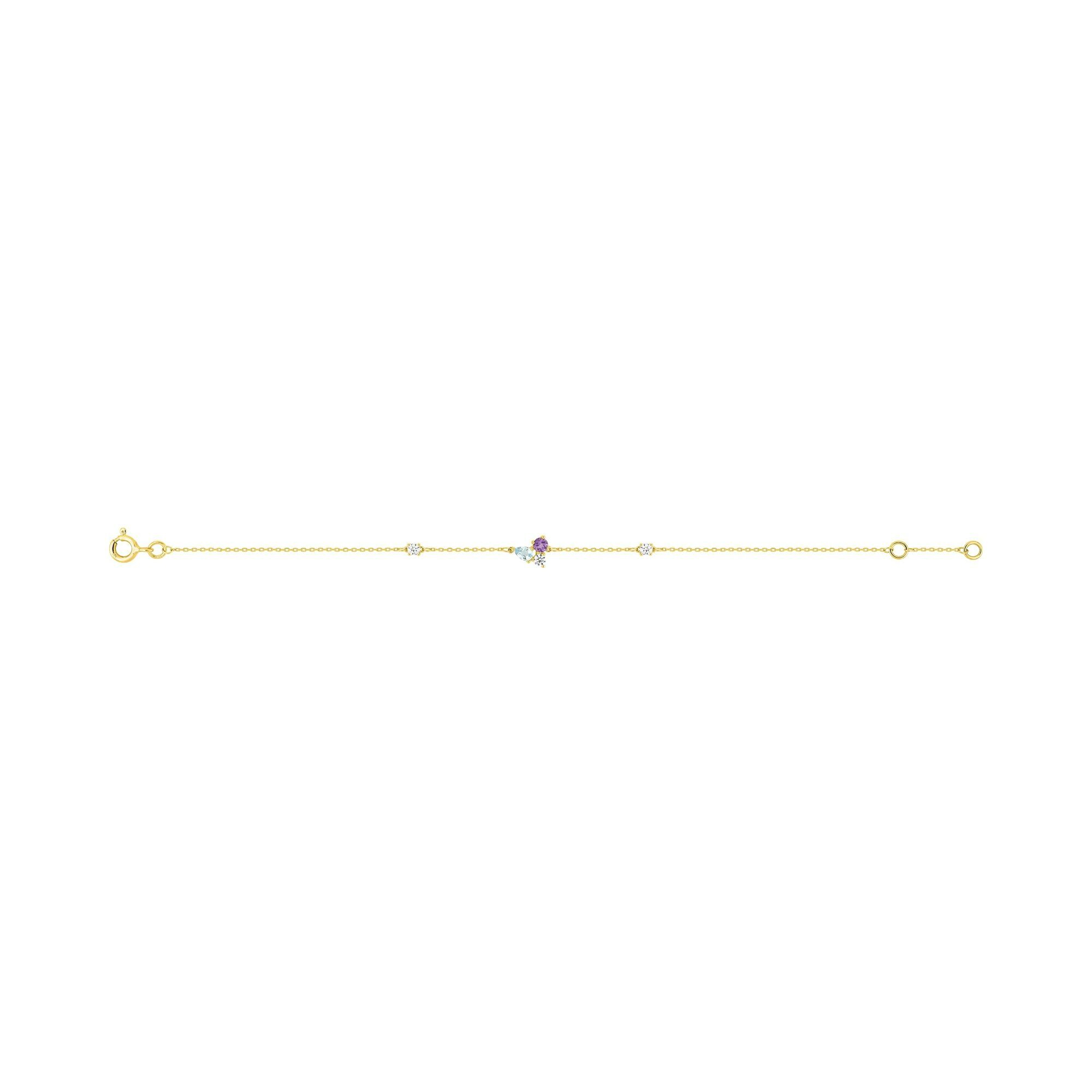 Bracelet en or jaune, oxyde de zirconium, topaze bleue et iolite Description détaillée