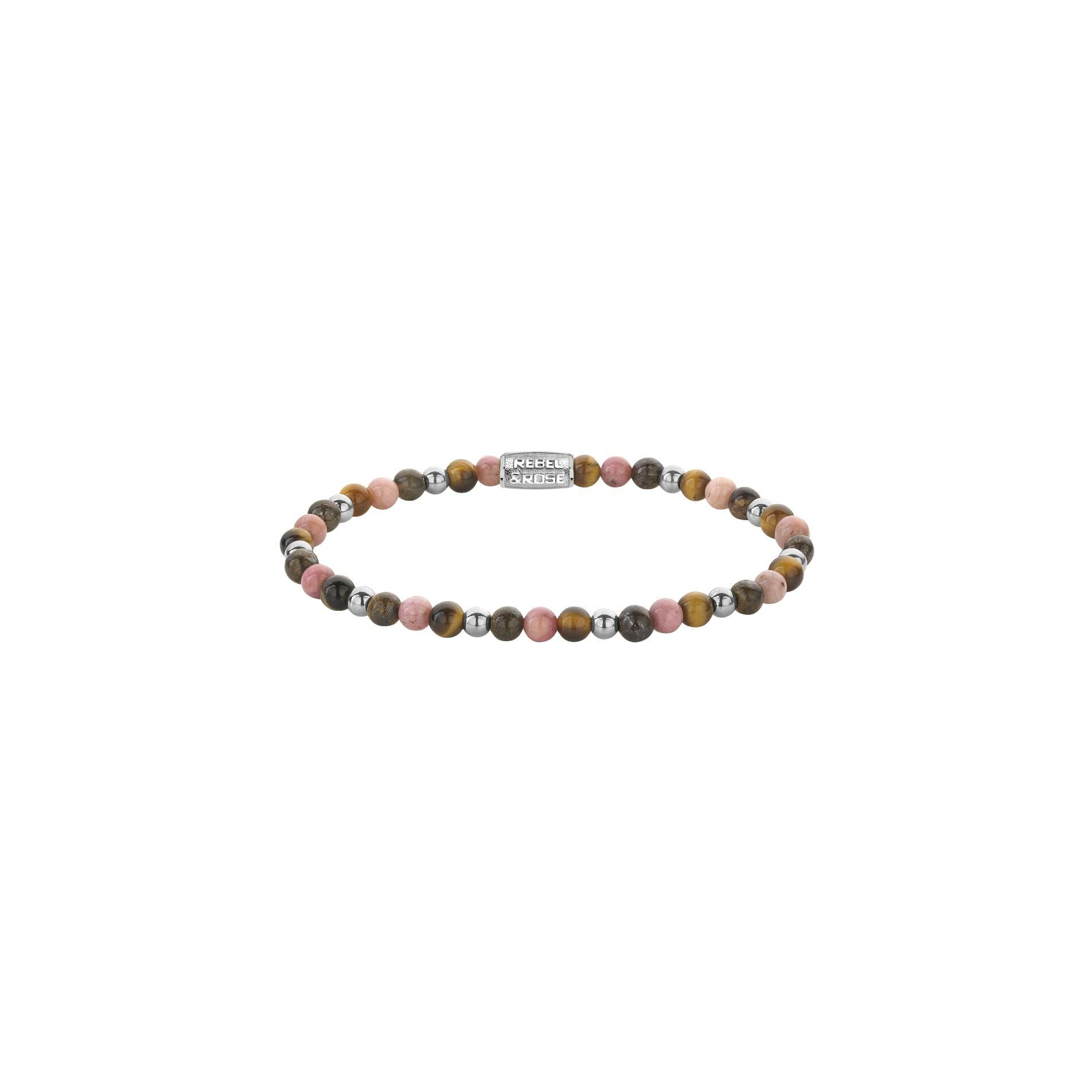 Bracelet Rebel & Rose More Balls Than Most en acier plaqué or, œil de tigre jaune, rhodochrosite lignifiée et bronzite brune, taille S Description détaillée