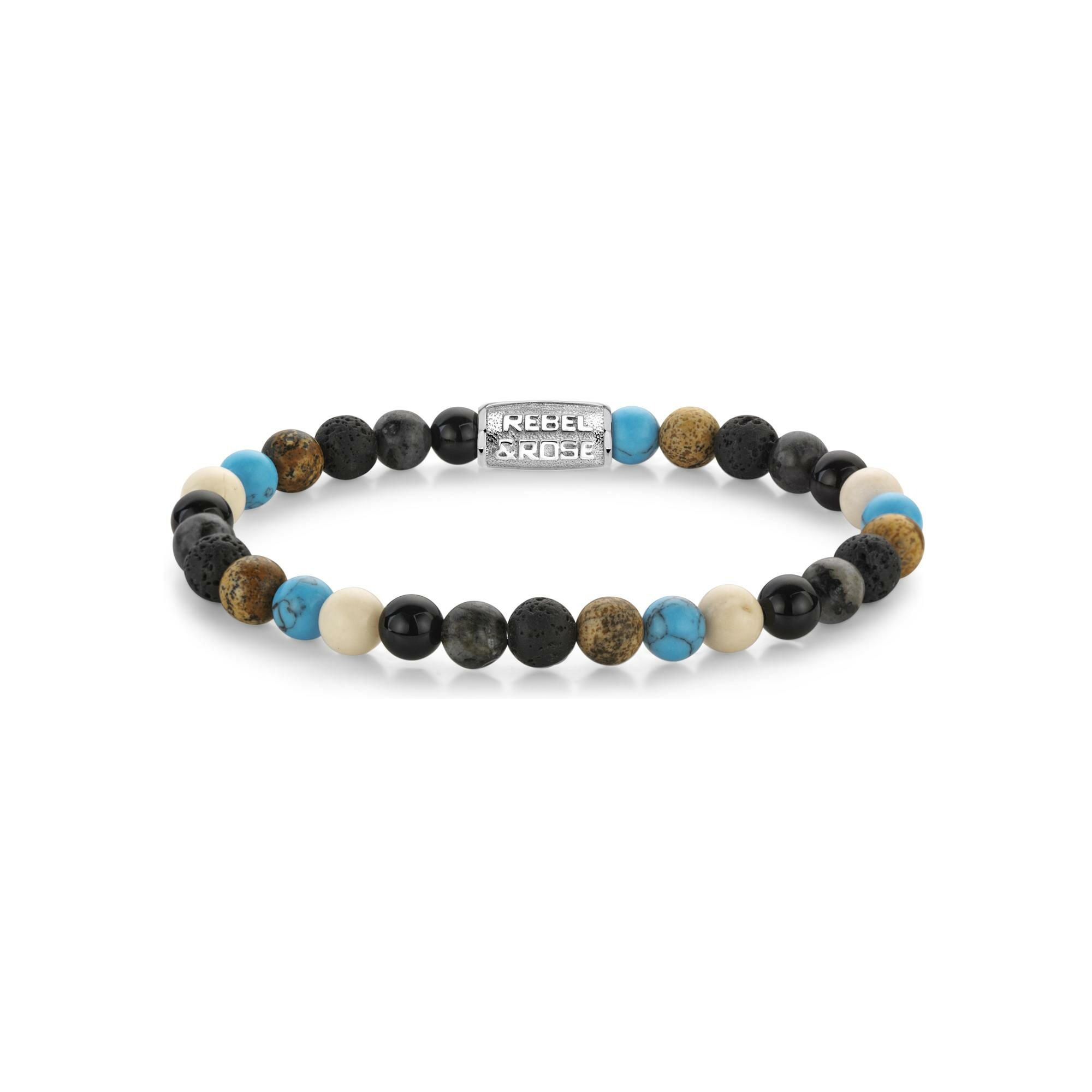 Bracelet Rebel & Rose Stones Only en acier, agate, larvikite, pierres de lave noire, turquoise de synth?se et fossil, taille L Description détaillée
