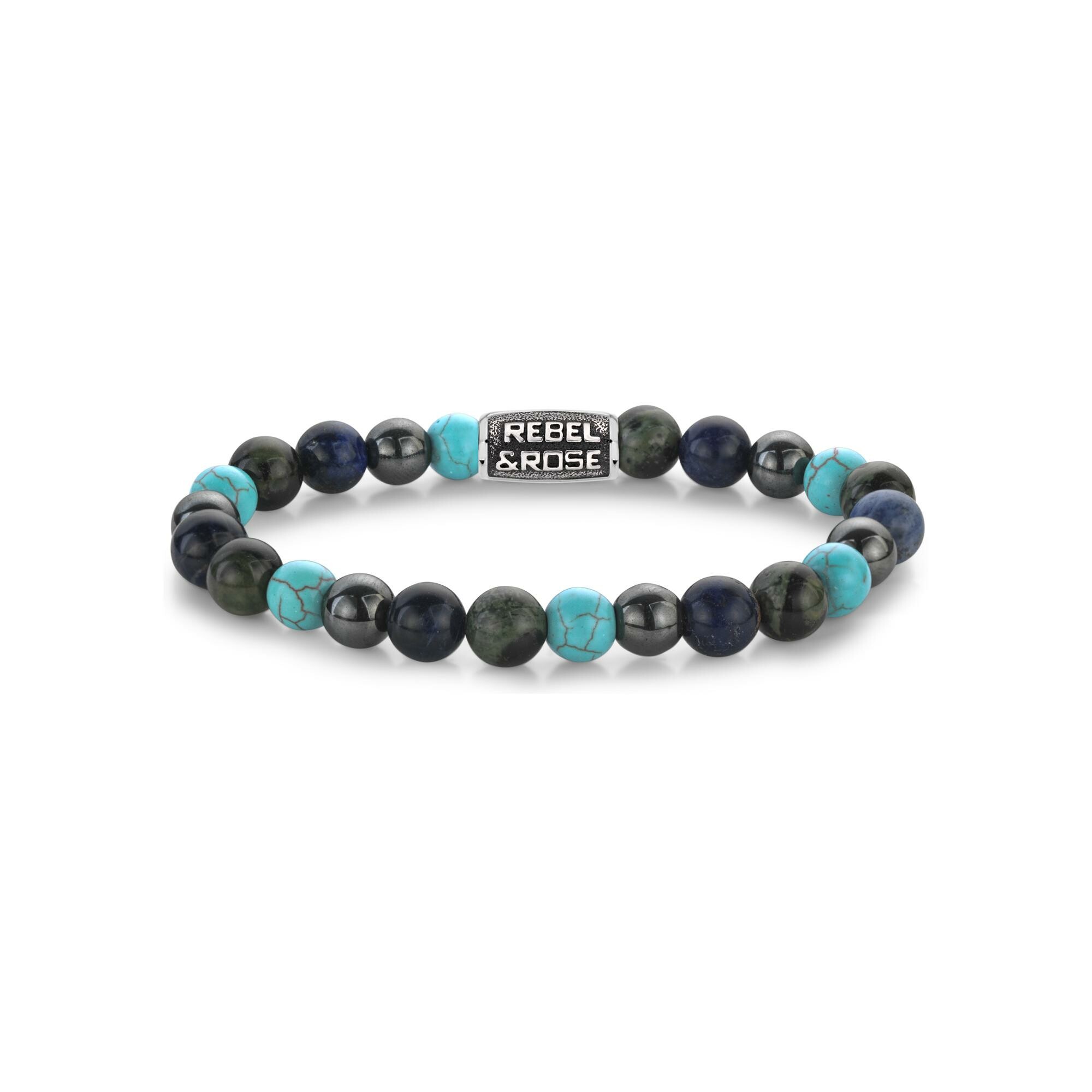 Bracelet Rebel & Rose Stones Only en acier, turquoise de synth?se, rhyolite, sodalite bleue et h?matite grise, taille M Description détaillée
