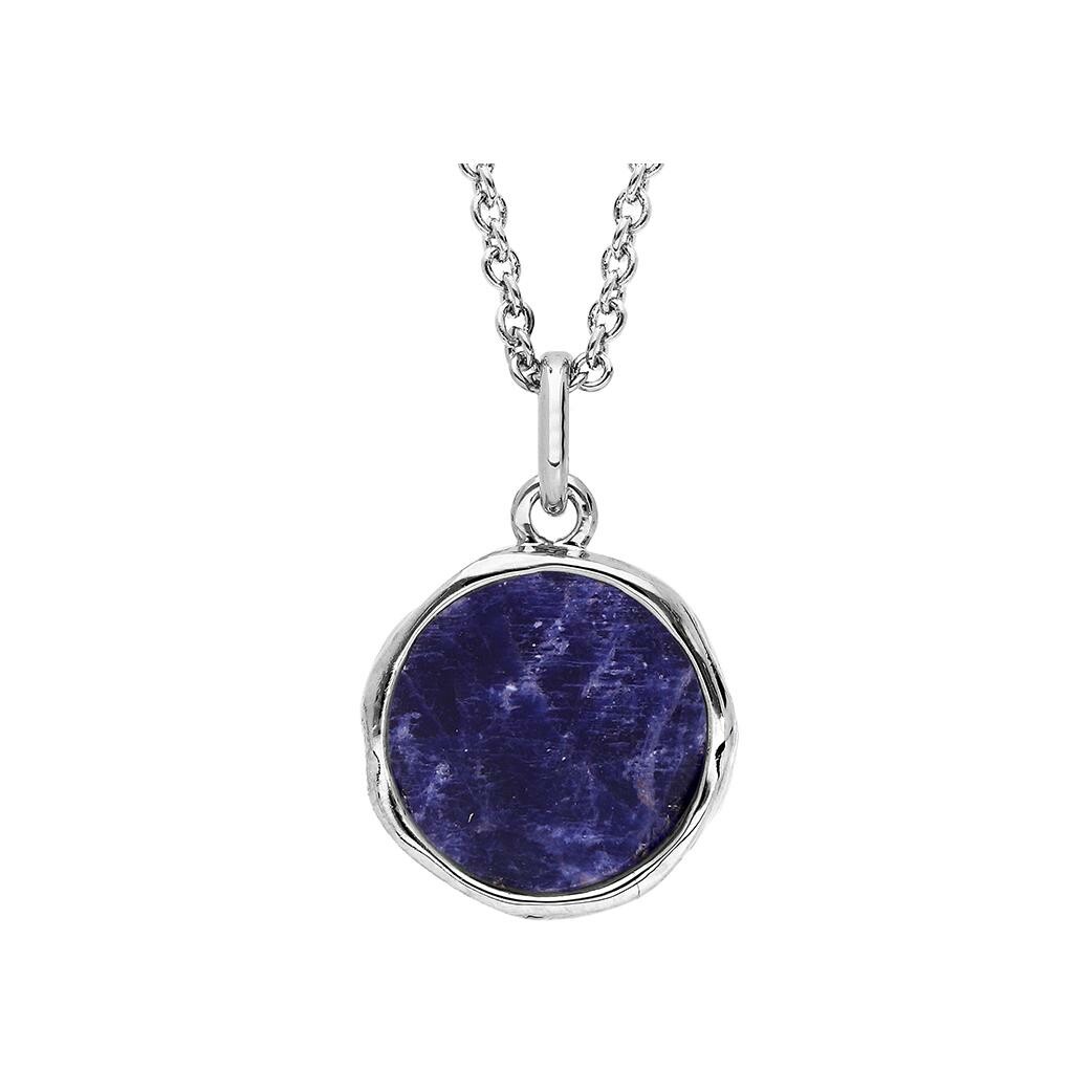 Collier argent rhodié pendentif forme irreguliere avec sodalite véritable 40+4cm Description détaillée