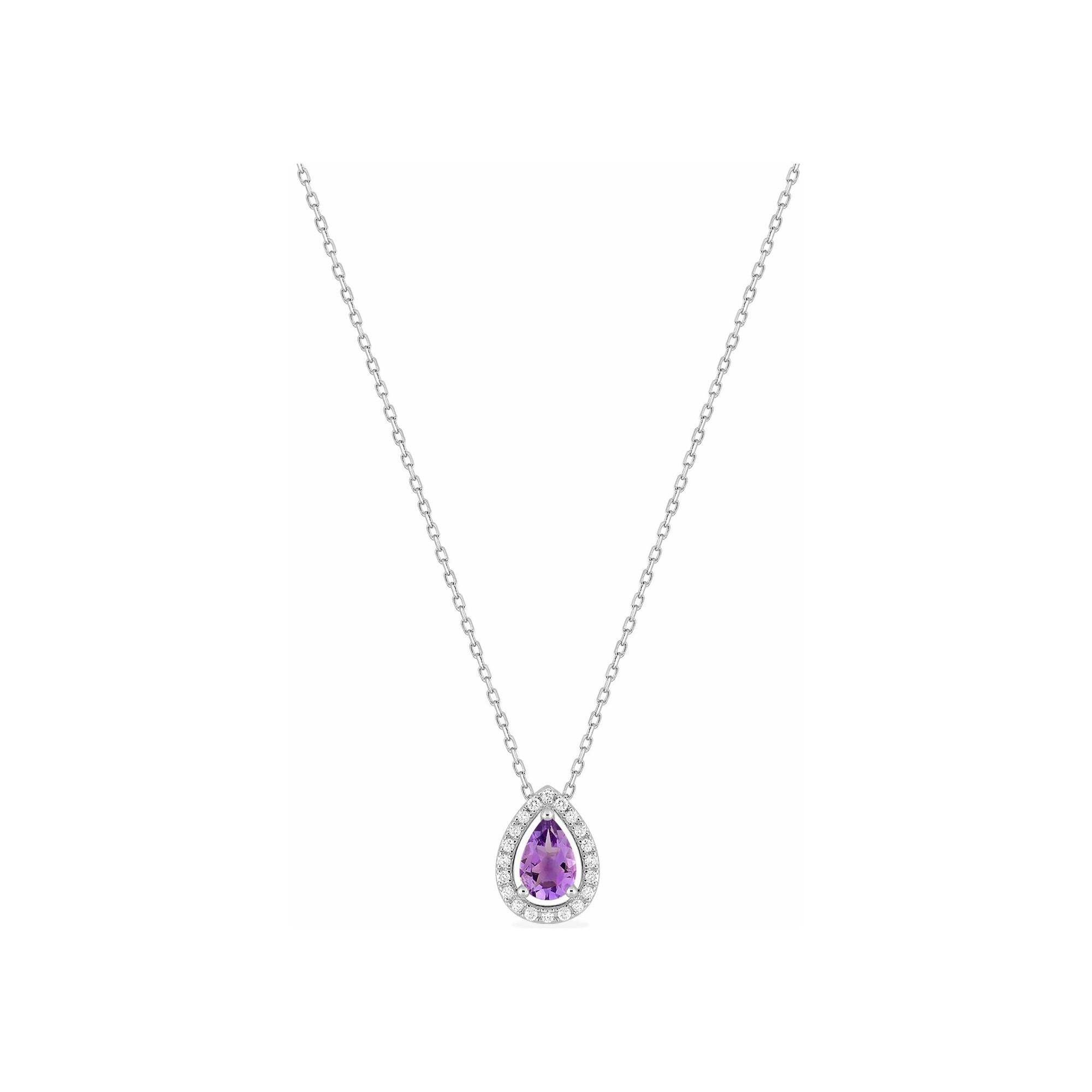 Collier en or blanc, améthyste et diamant 0.08ct Description détaillée