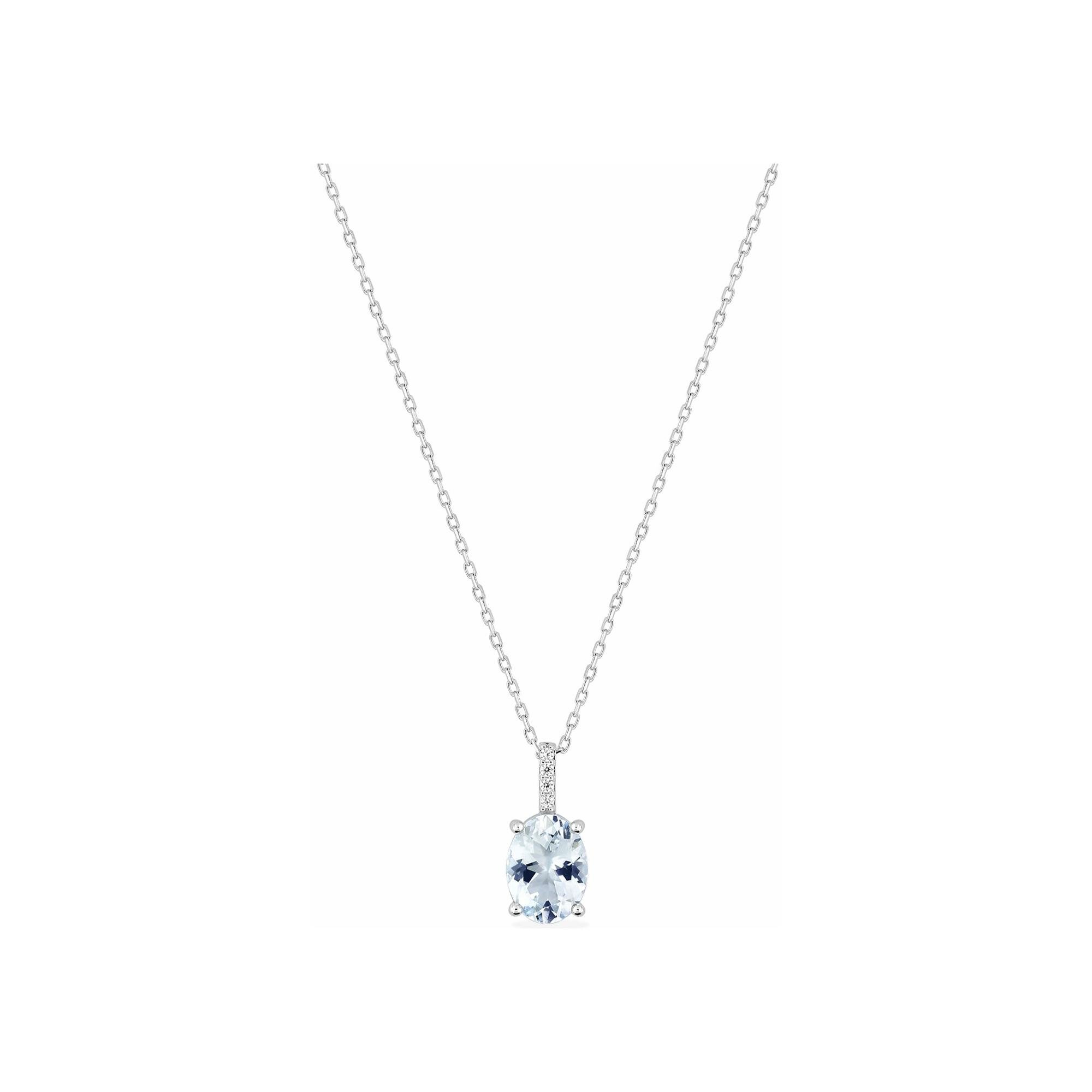 Collier en or blanc, oxyde de zirconium et aquaprase Description détaillée