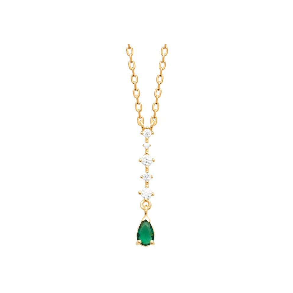 Collier en plaqué or, oxyde de zirconium et pierre synthétique Description détaillée