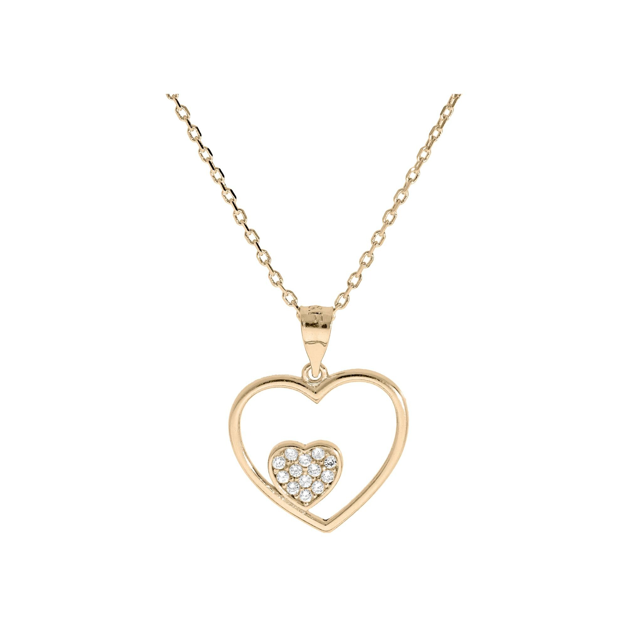 Collier plaqué or pendentif coeur evidé petit coeur oxydes blancs sertis 40+5cm Description détaillée