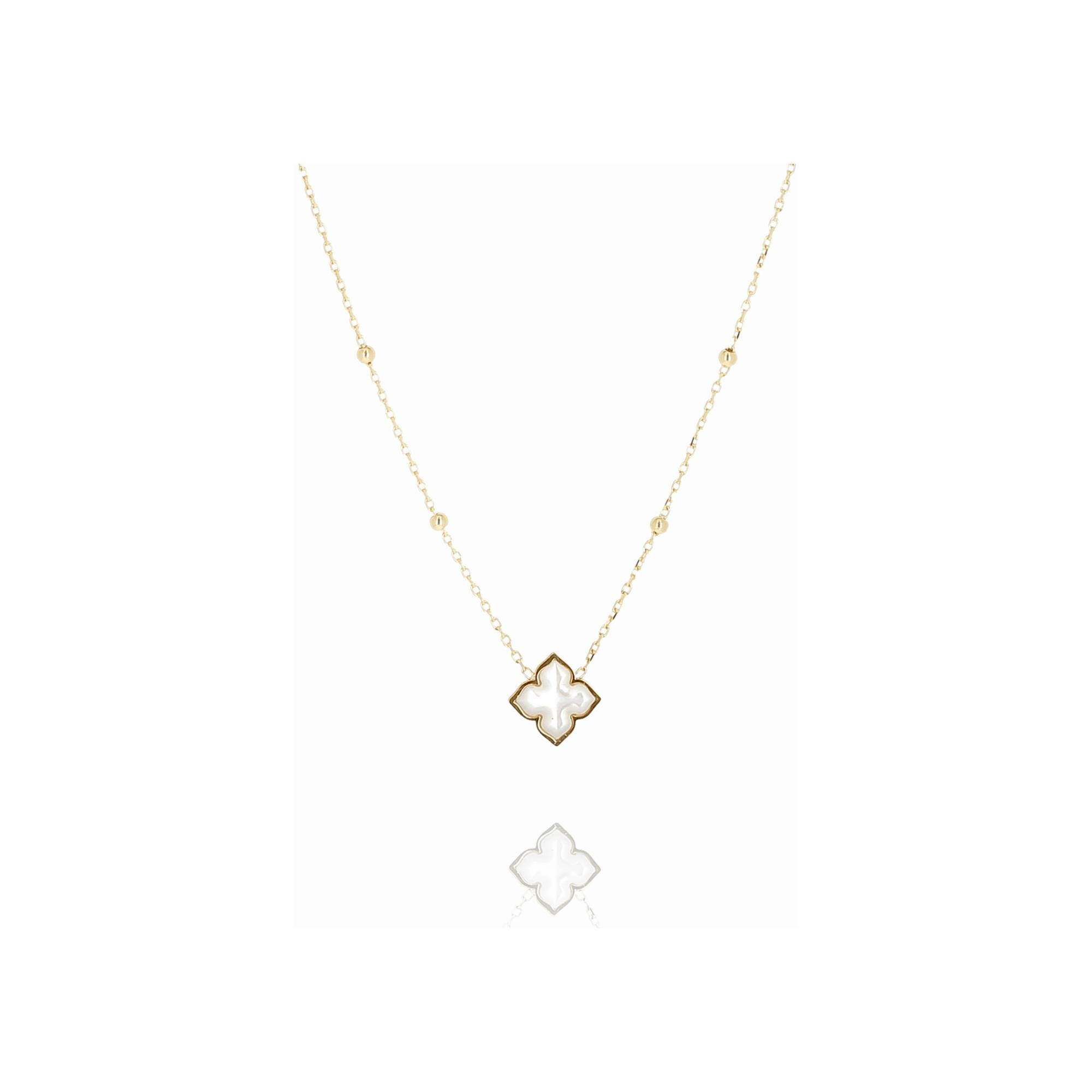 Collier Zag Racine en acier doré et nacre Description détaillée