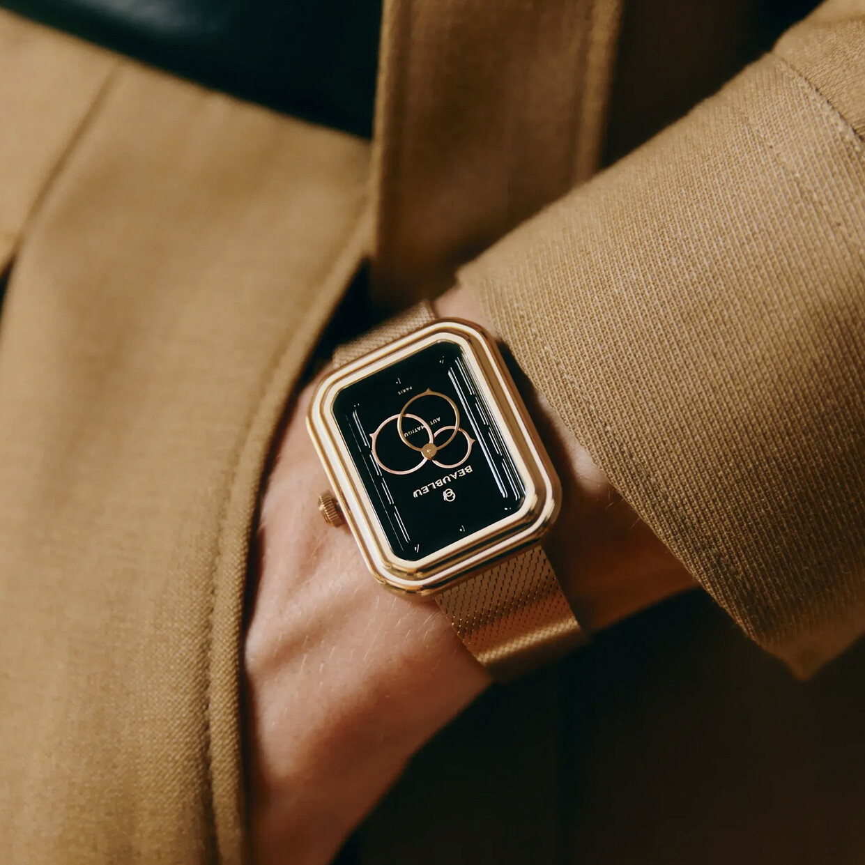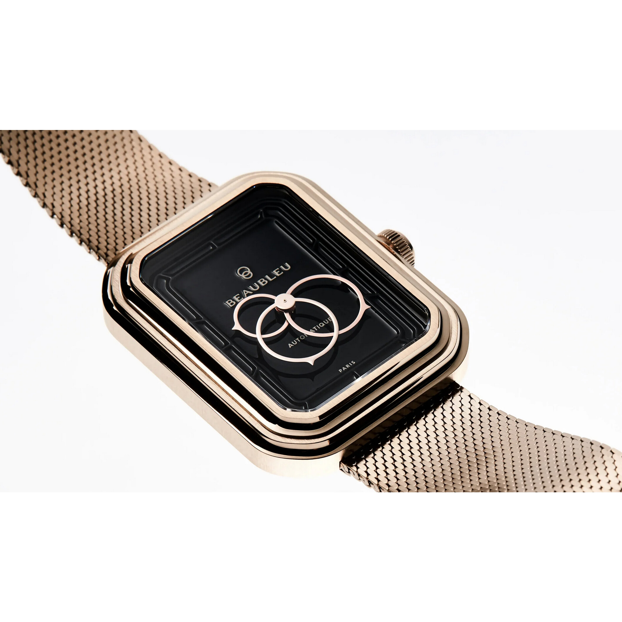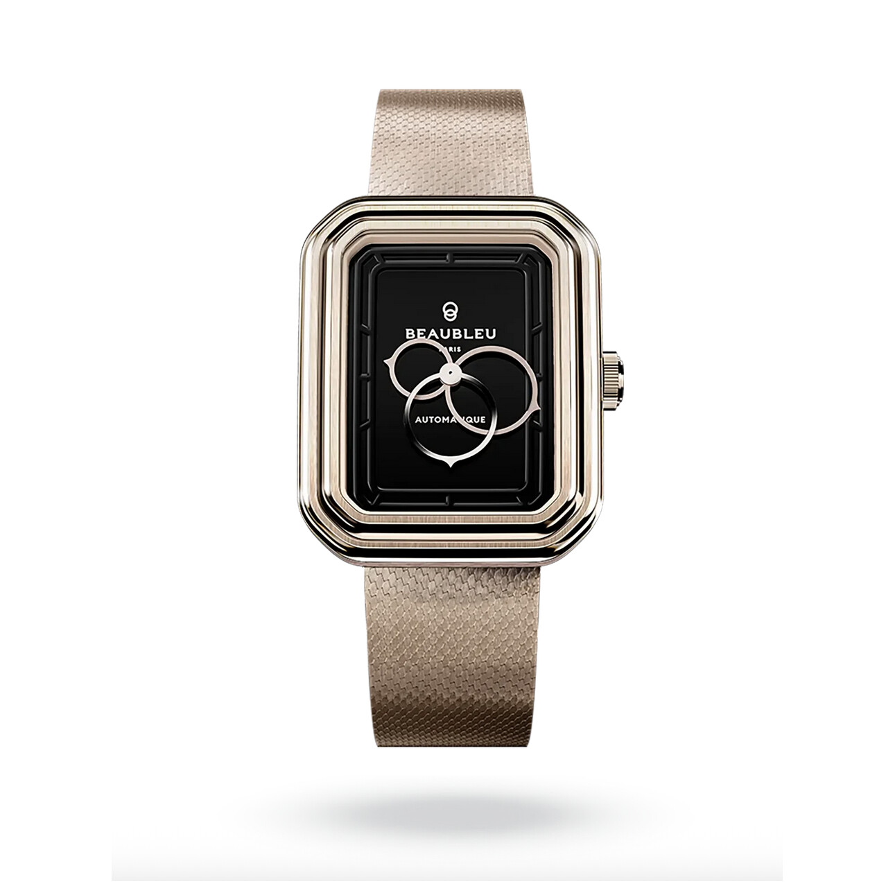 Arborant un cadran noir à la teinte profonde, Ecce Figura Onyx puise son inspiration dans les cachets de cire d’antan et apparait comme scellée dans la matière. Son boîtier or rose, à la silhouette semi-octogonale, contraste l’ensemble avec des lignes courbes, esquissées et affinées par un jeu d’alternance de poli et brossé.