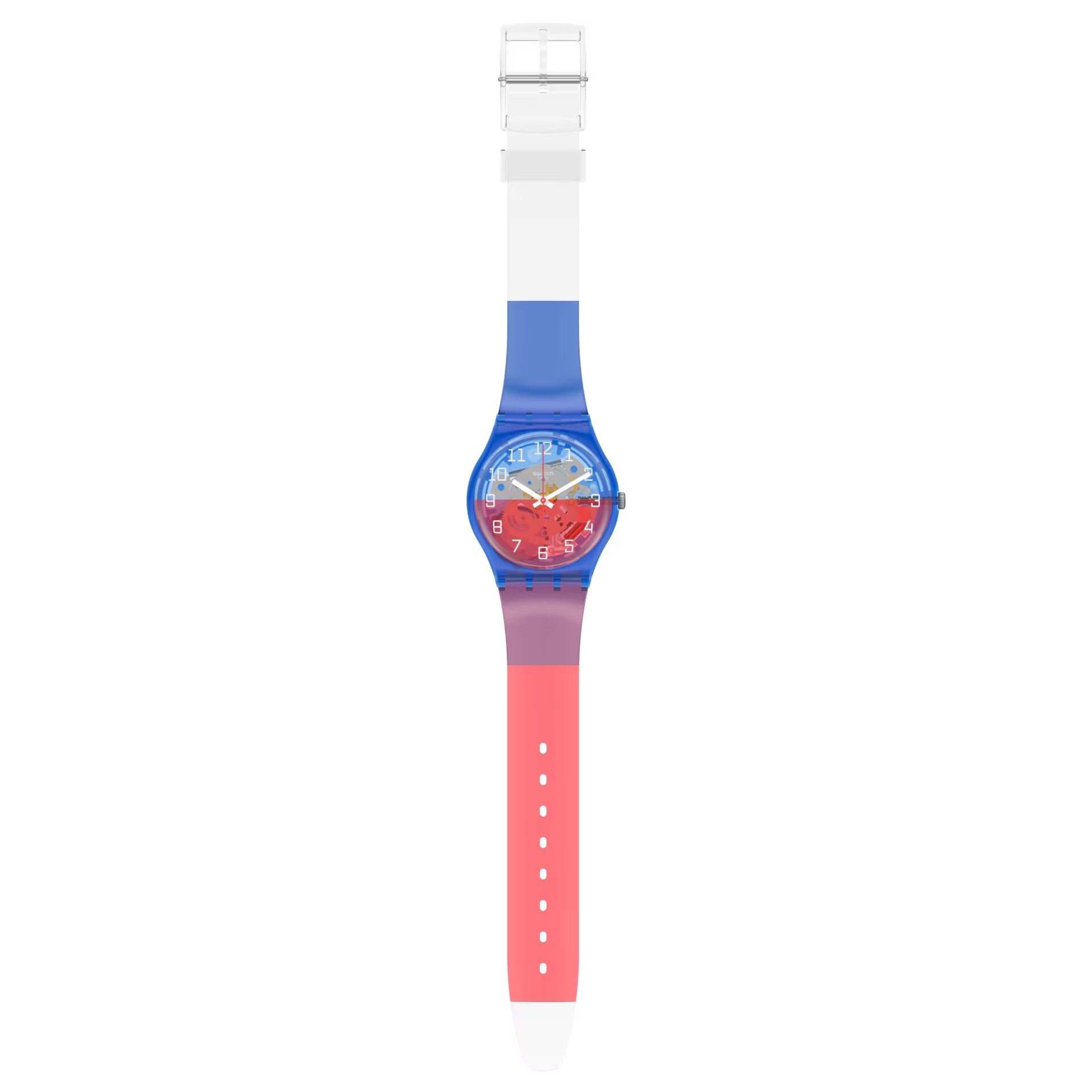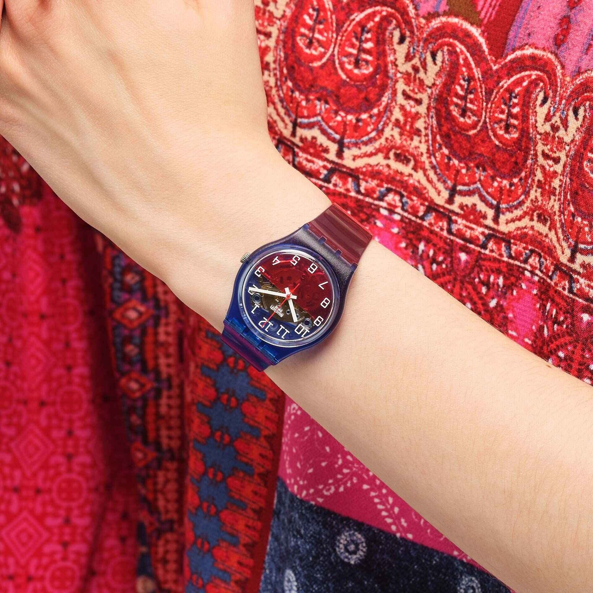 Cette montre affiche fièrement son intérieur avec un design transparent innovant et un bracelet en silicone coloré.