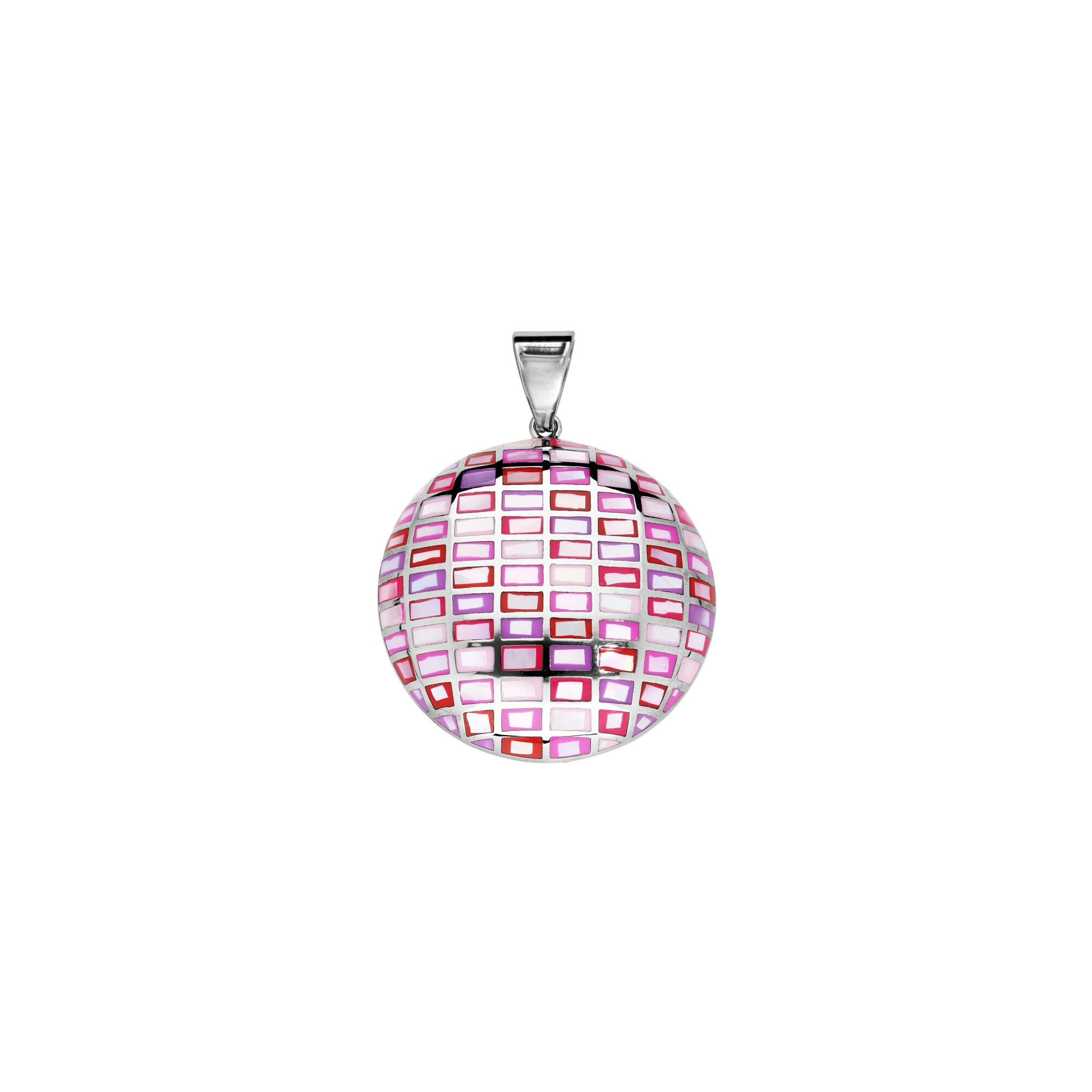 Pendentif Stella Mia rond en acier, résine rose et nacre Description détaillée