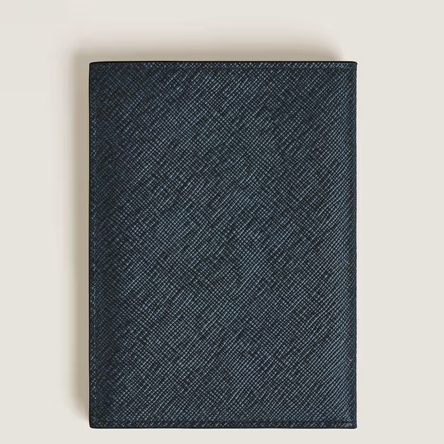 Compagnon de voyage raffiné, ce porte-passeport est fabriqué en cuir Sartorial embossé bicolore dans une combinaison élégante de bleu et de noir. Conçu pour être fonctionnel et élégant, il contient votre passeport en toute sécurité et offre deux fentes pour les cartes de crédit, ce qui en fait un accessoire essentiel pour les voyageurs sophistiqués.