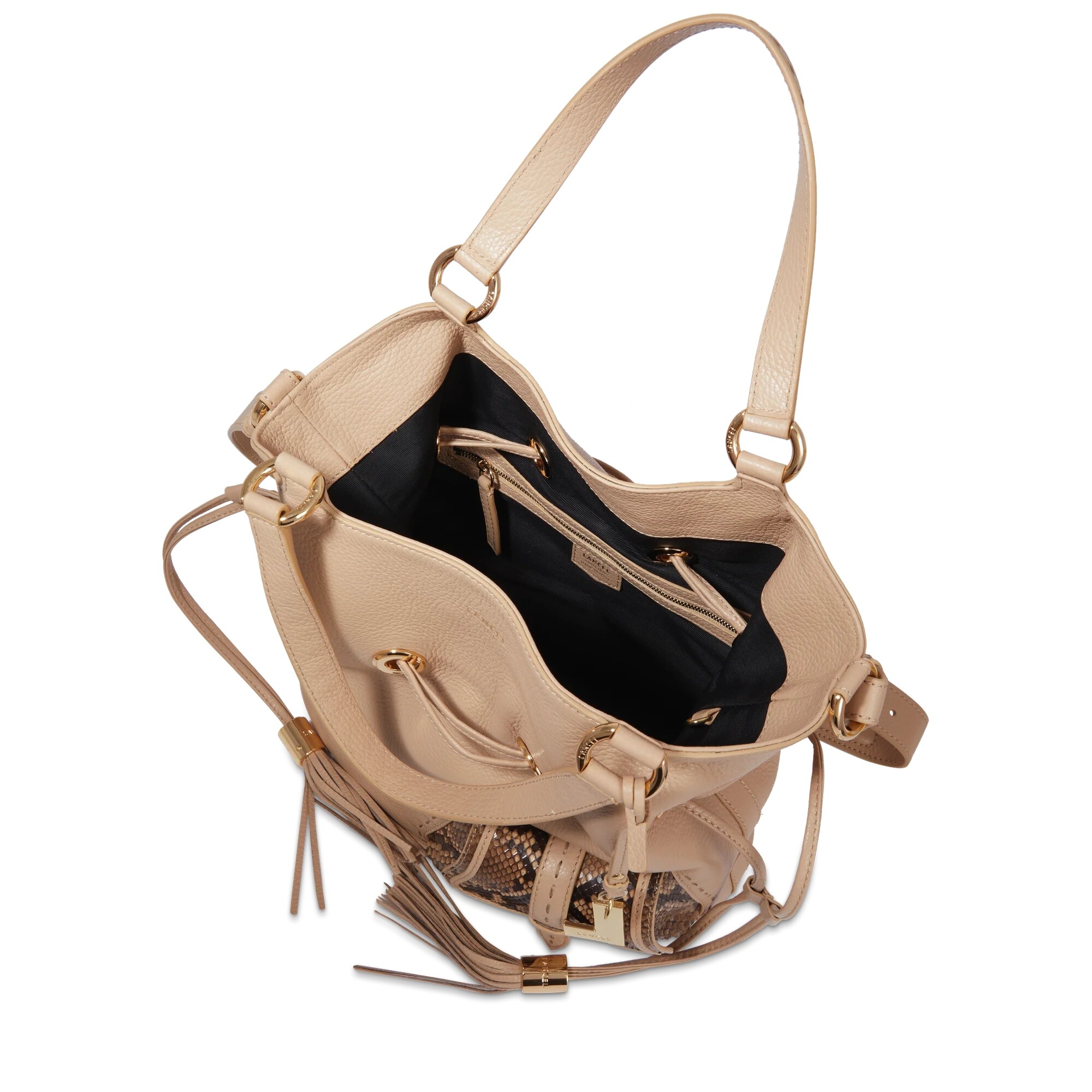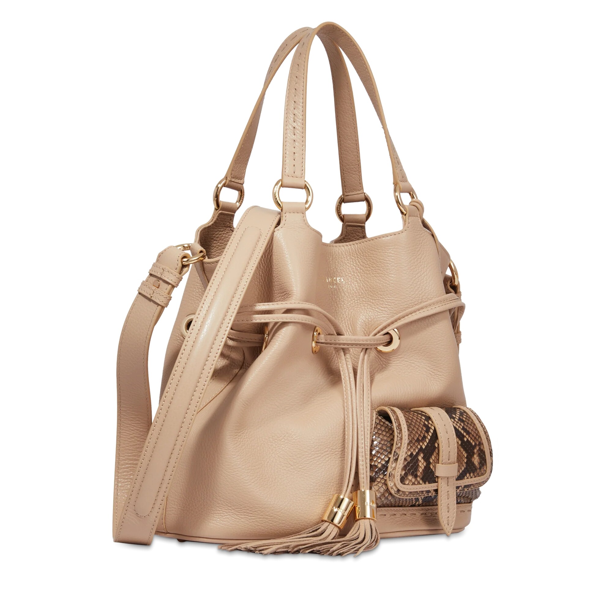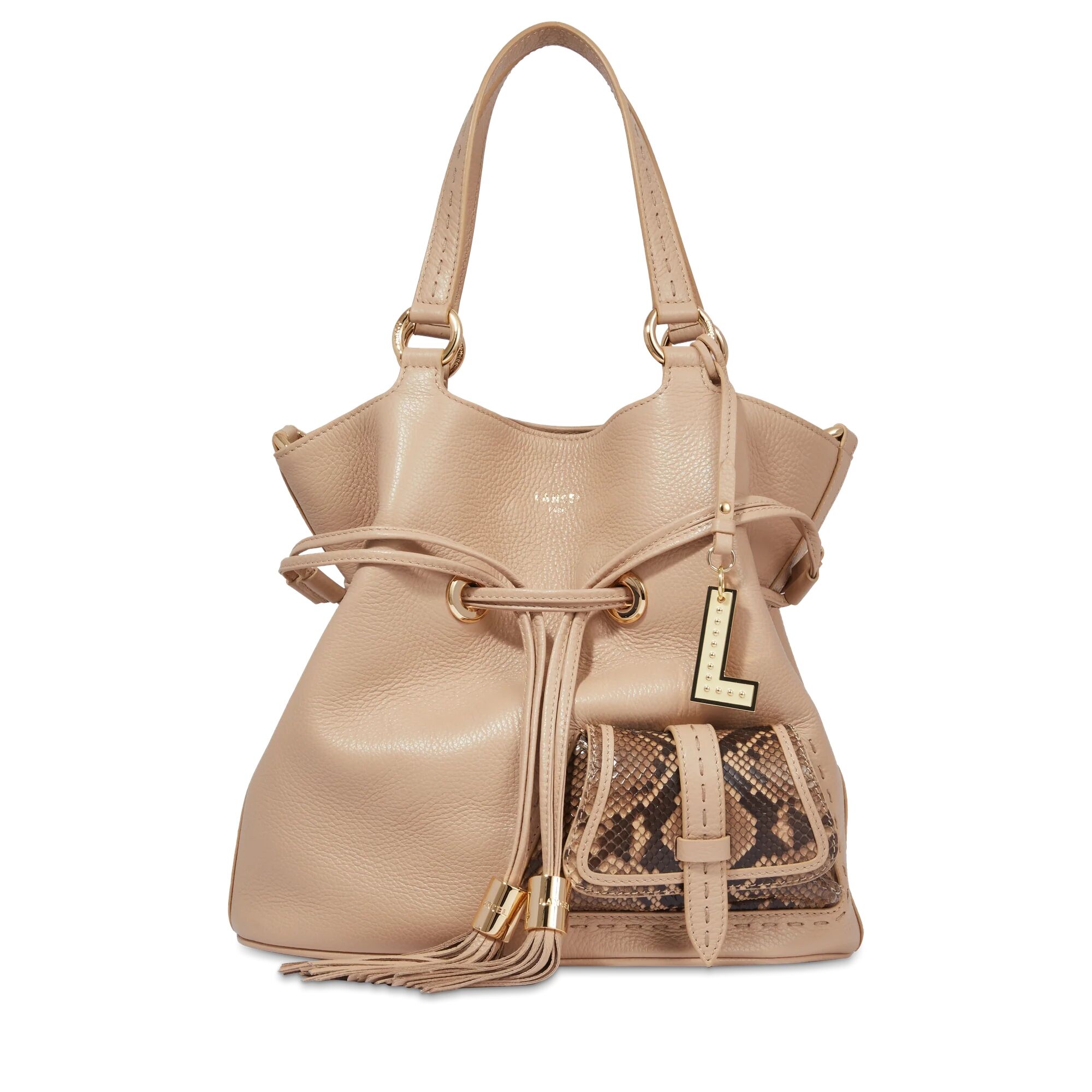 Sac à main seau Premier Flirt de Lancel cuir Capuccino-Pyhton / Doré Taille M A105298BTU Description détaillée