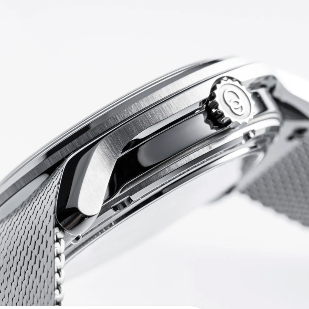 Cadran émaillé | Aiguille Flottante | Diamètre 39mm | Boitier en Acier 316L | Mouvement Automatique francais | Largeur du bracelet 20mm