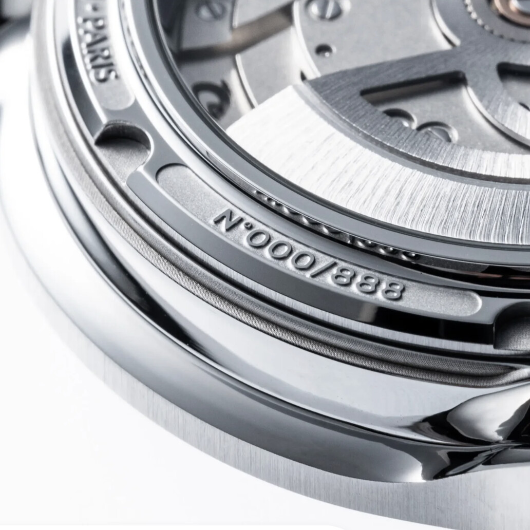 La seconde volante tourne en apesanteur aux abords du cadran, avec un je-ne-sais-quoi d'insaisissable. Elle égraine le temps et apporte une touche de magie toute particulière à l'ensemble.