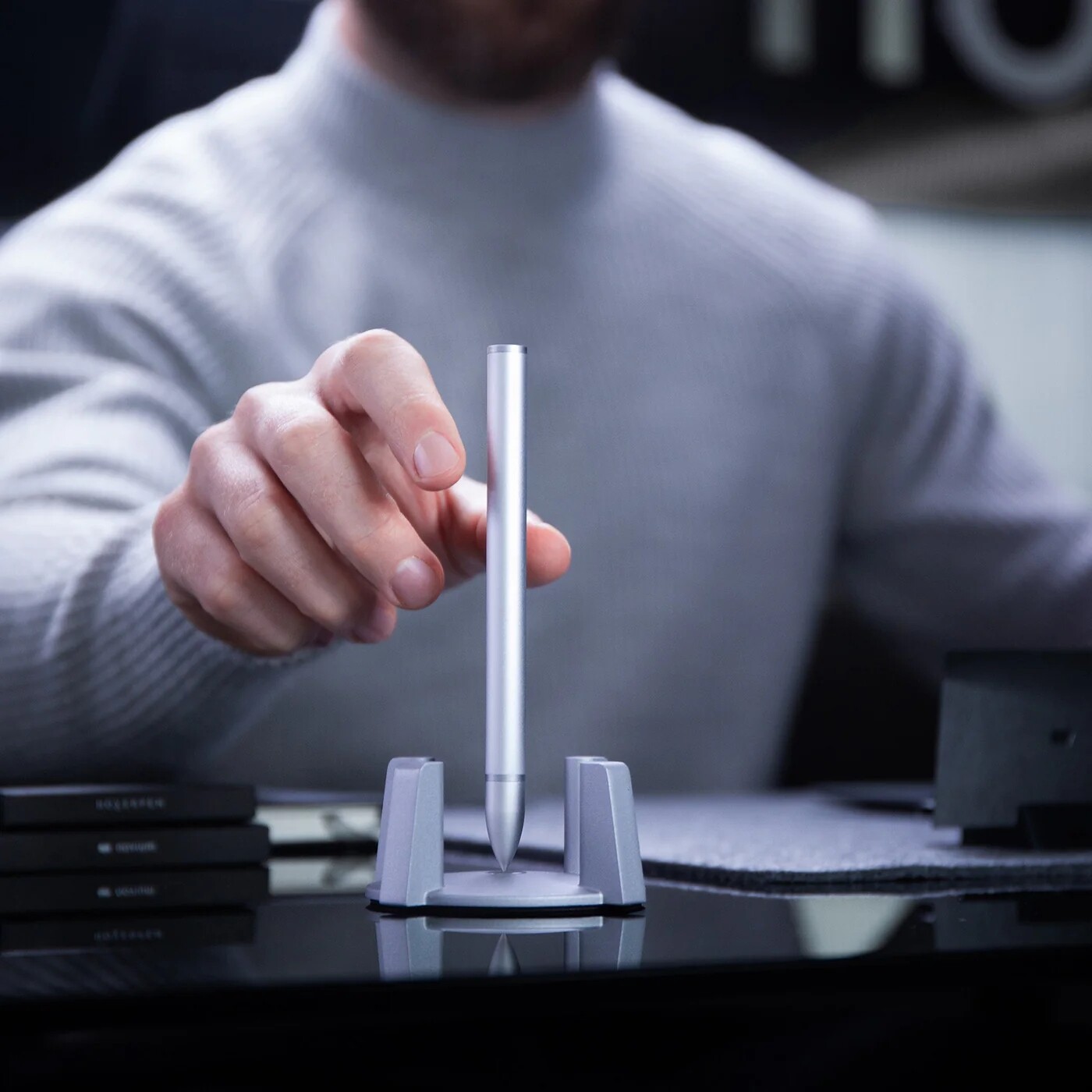 Le Hoverpen Classic, premier stylo au monde à léviter verticalement, défie les lois de la gravité.