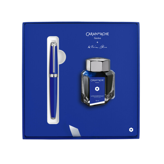 KLEIN BLUE Coffret cadeau Stylo plume Caran d'Ache Léman KLEIN BLUE avec encrier Edition Limite